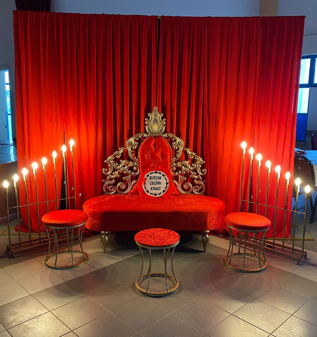 Bir kına gecesinin en dikkat çekici anı, gelinin tahtında salona giriş yaptığı andır. Bu an, gecenin simgesidir. Burhaniye Kına Organizasyon Hizmeti, göz kamaştıran taht modelleriyle bu anı unutulmaz hale getirir. Işıltılı süslemeler, renkli kumaşlar ve konseptle uyumlu aksesuarlarla hazırlanan tahtlar, gelini bir prenses gibi hissettirir.